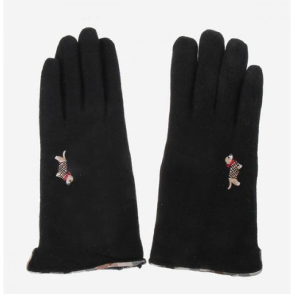 The DAKS Black Dog Embroidery Women's Gloves DCGV9F203BK are made from wool material, providing warmth and luxury. They feature cute dog embroidery and a DAKS signature check line for added style, with fur lining for additional warmth. Moreover, they include smartphone touch functionality, making them practical for smartphone use while wearing.