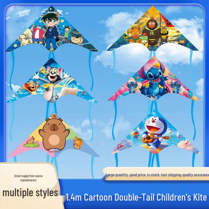 Weifang Cartoon Delta Double-Tail Kite: Handmade, Plaid, Easy-Fly, Curved Edge, Outdoor Toy for Kids