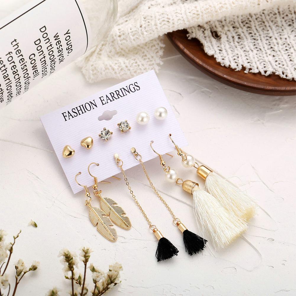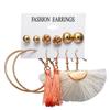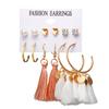 6 pairs Women Fashionable Bohemian Tassels Romantic Earrings Flower Pattern Earrings