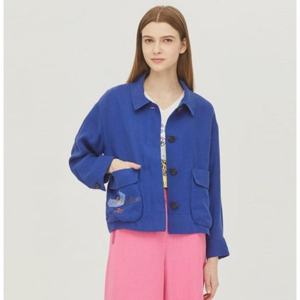 The Benetton Painting Linen Jumper BAJPF1431 features a painting print color-blocked design made from linen for a comfortable fit and a cool summer feel. It has a shirt collar with a double placket hidden button closure, giving a clean look. The lower sides include two outer pockets for ample storage, and the relaxed fit along with one-button cuffs enhance mobility. This jumper is versatile and can be easily styled with various items for a casual outerwear look.