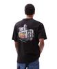 The GoXo Men's Swag Cart Spandex Round T-Shirt in Black is a men's short-sleeve t-shirt designed for golf wear. It features a round neck design and spandex material that provides a comfortable fit. Key features include the moisture-wicking and quick-drying properties of the fabric, keeping you comfortable during rounds of golf. The material has a subtle stripe texture for a luxurious feel, and contrasting colors are added to the sleeves and collar for a stylish appearance. The bottom hem includes a slit detail, allowing for free movement and excellent mobility.