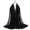 Women Solid Color Pearls Chiffon Scarf Muslim Lady Hood Headcloth