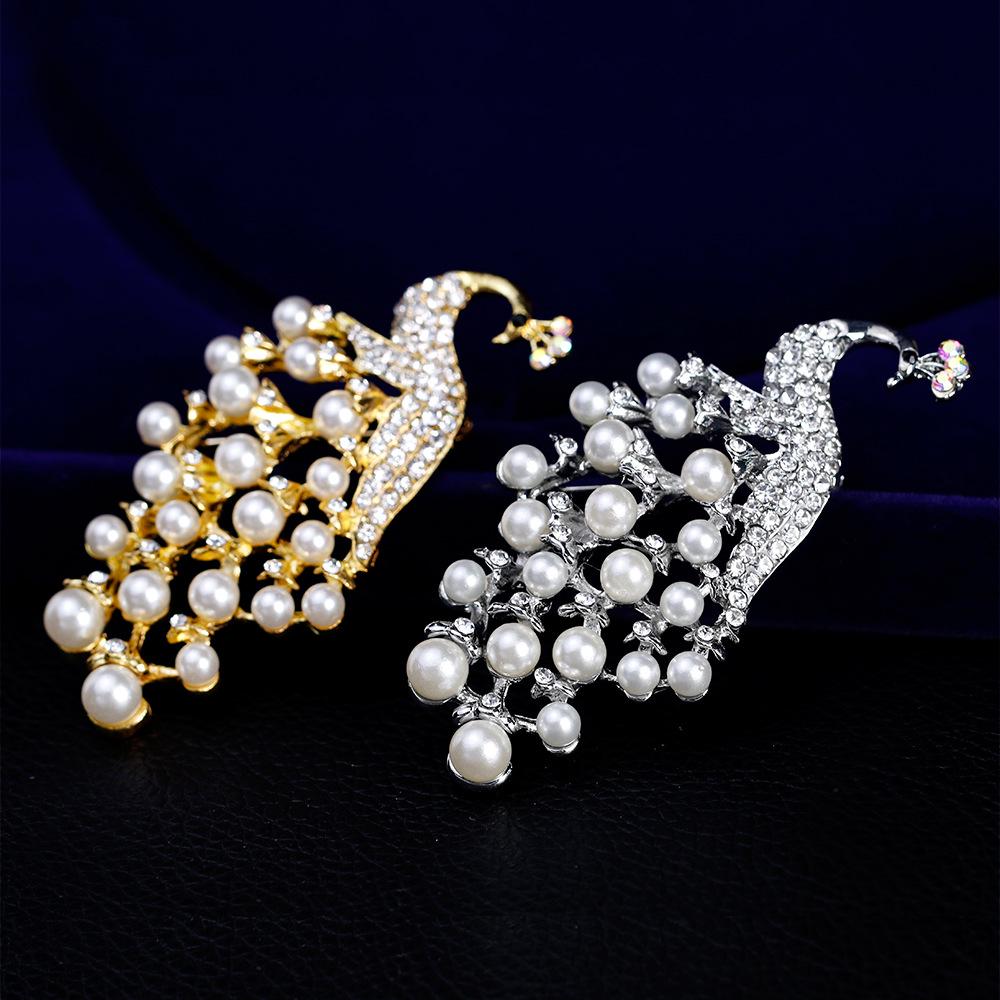 Women Girls Refined Brooches Fashionable High-end White Pearl Peacock Elegant Sparkling Rhinestone Breastpin Pin
