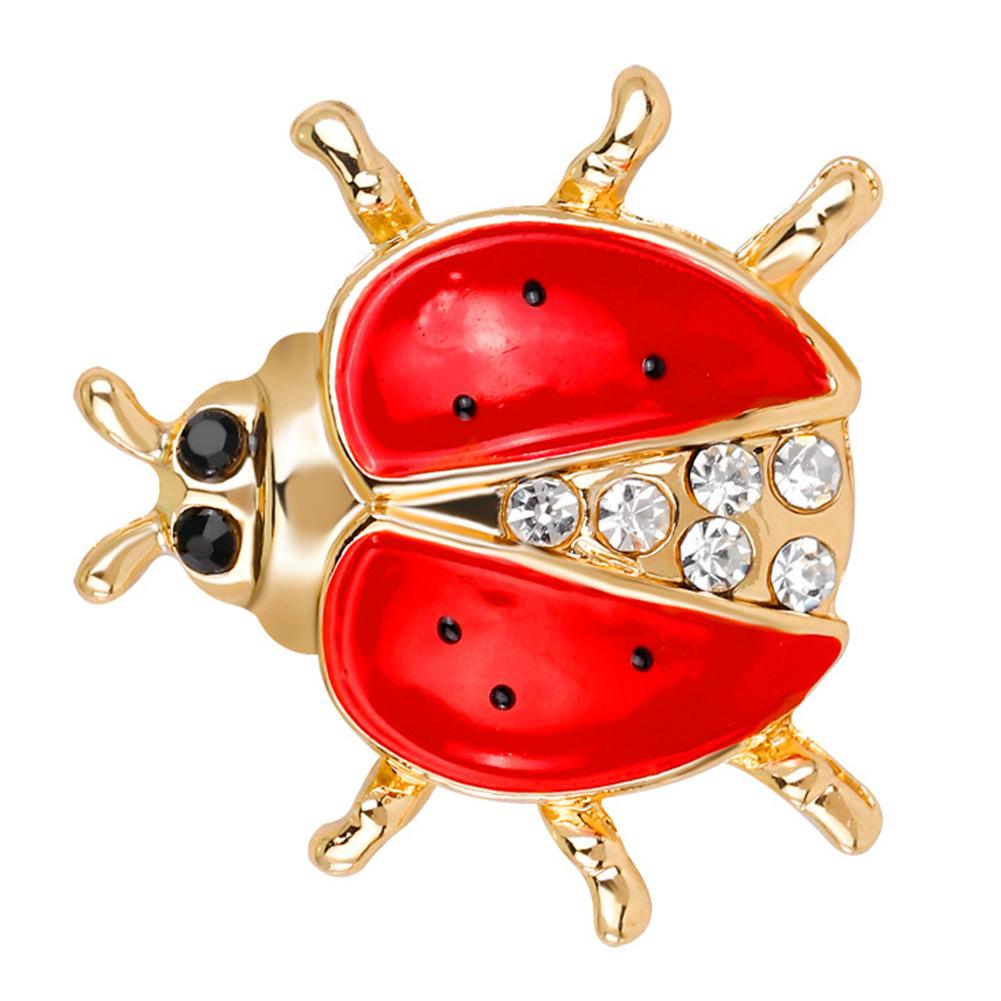 Women Girls Teen Refined Brooches Ladybug Modelling Dazzling Rhinestone Hat Dress Breastpin for Wedding Birthday Gift