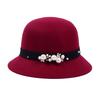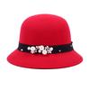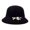 Vintage Women Domed Woollen Hat Adult Fashion Rivets Pearl Decoration Warm Lady Bucket Cap in Winter Autumn Outdoor