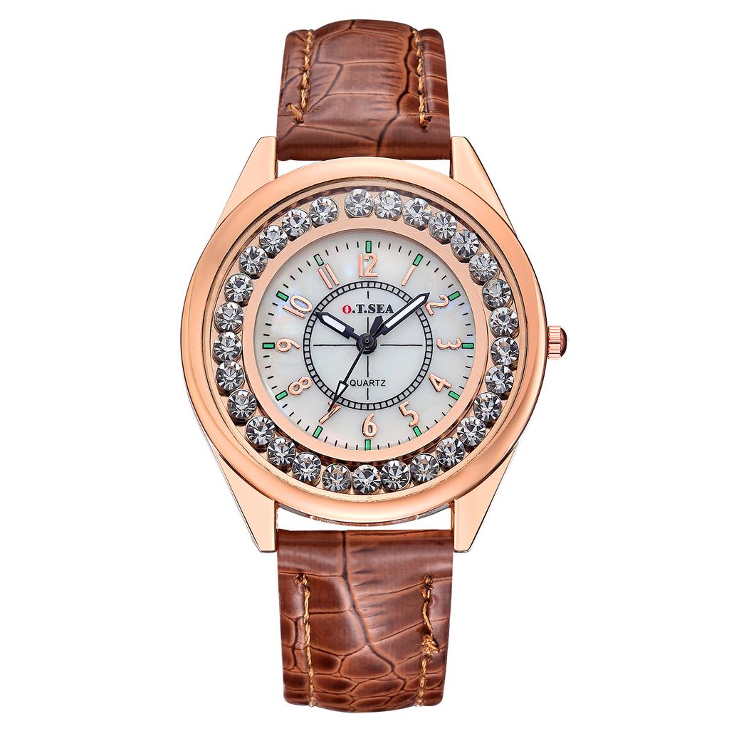 Men Women Couple Diamond-bordered Waterproof Leather Belt Luminous Quartz Watch Wristwatch