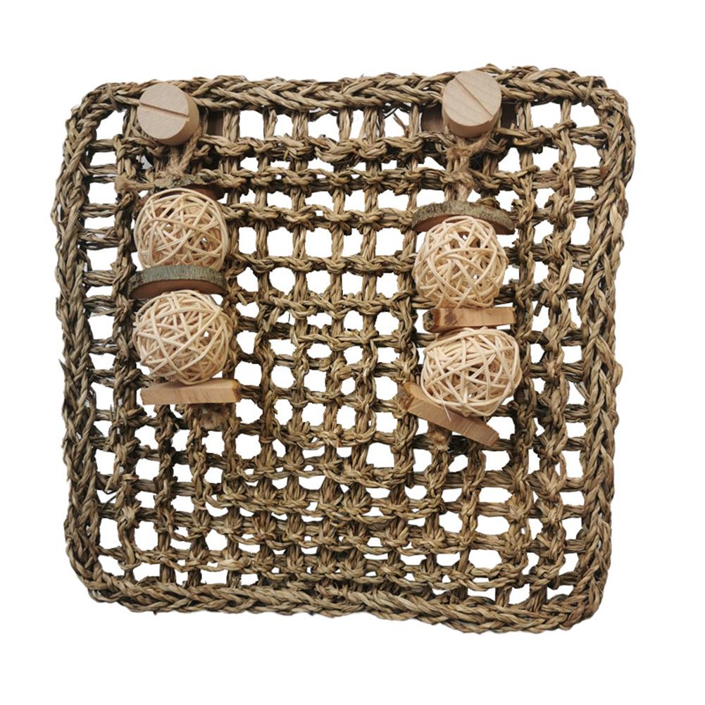 Hanging Grass Mat With Wicker Balls Chew Toys Pet Supplies For Rabbit Chinchilla Guinea Pig Teeth Cleaning