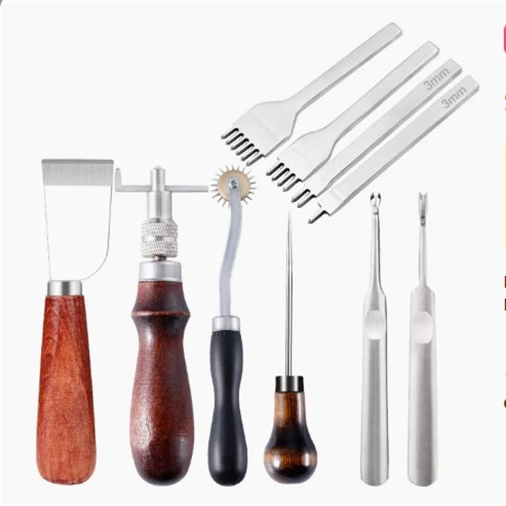 10 Pieces Leather Craft Tool Kit Hand Sewing Repair Kit Stamping Punching