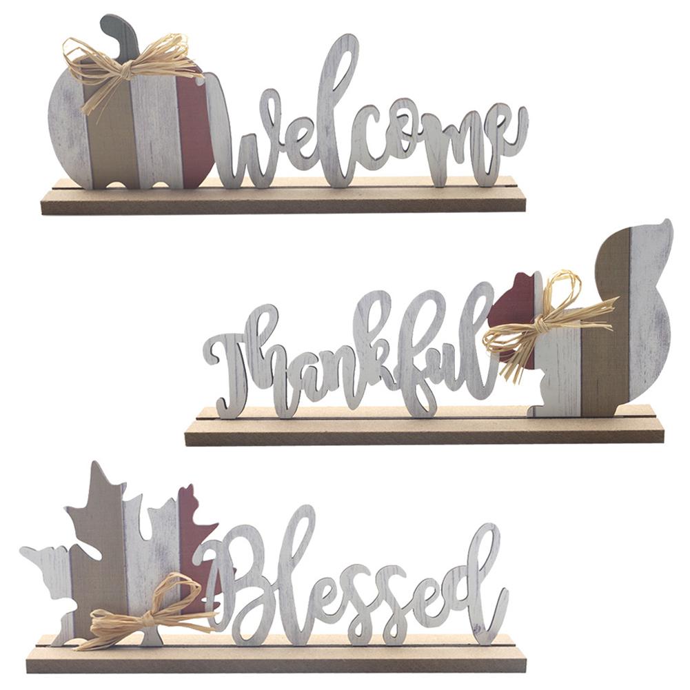 3pcs Wooden Welcome Sign Fall Pumpkin Squirrel Maple Leaves Table Ornaments For Thanksgiving Home Farmhouse Decor