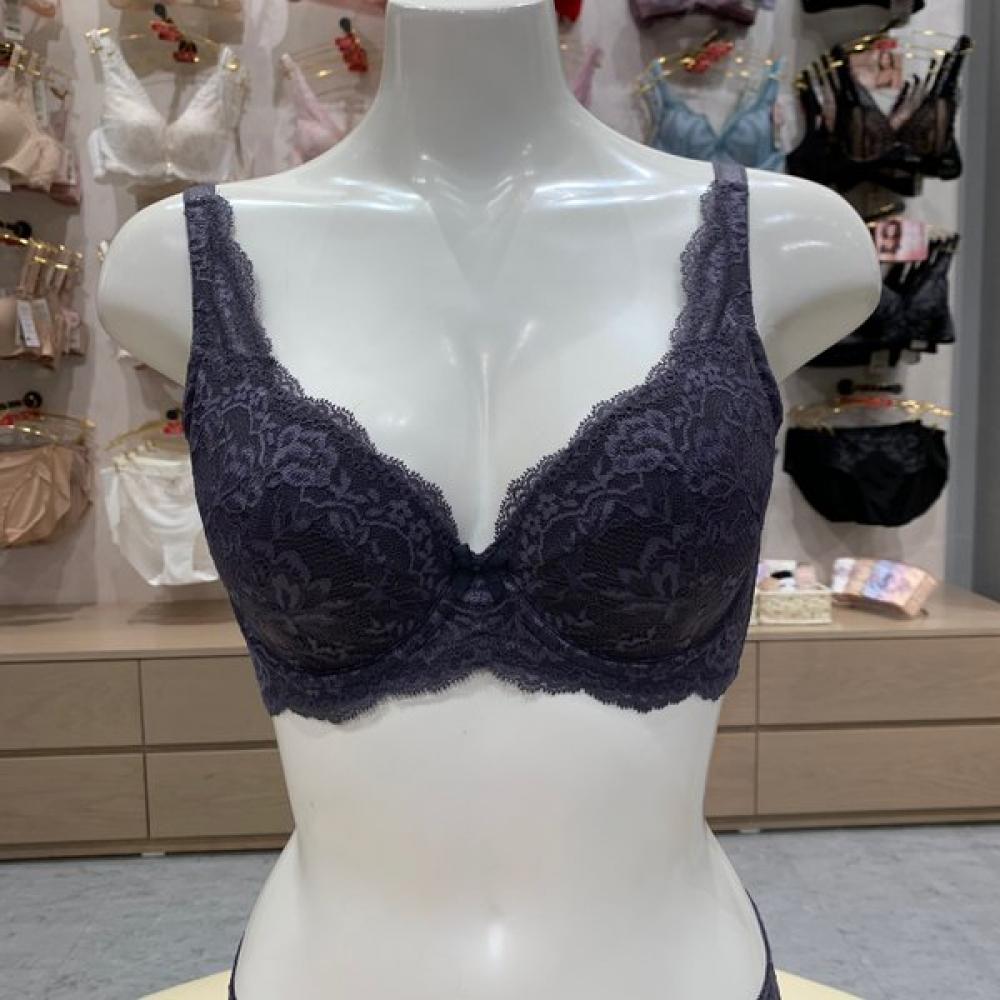 Sizes C and D are available from 75 to 90, while size E is available from 75 to 85. The deep charcoal gray color adds a touch of elegance, making it an ideal alternative to basic black bras. A matching panty set is also available for reference.