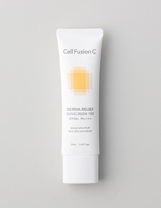 Cell Fusion C Derma Relief Sunscreen 100 50ml is a gentle inorganic sunscreen cream designed for sensitive and delicate skin, suitable for the whole family from children to adults. This product features Zinc Oxide as its main ingredient, effectively blocking UVA and UVB rays with a strong SPF50+ and PA++++ UV protection rating.