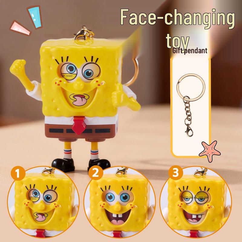 SpongeBob Emoji Face-Changing Keychain Pendant - Creative Student Decompression Toy Gift