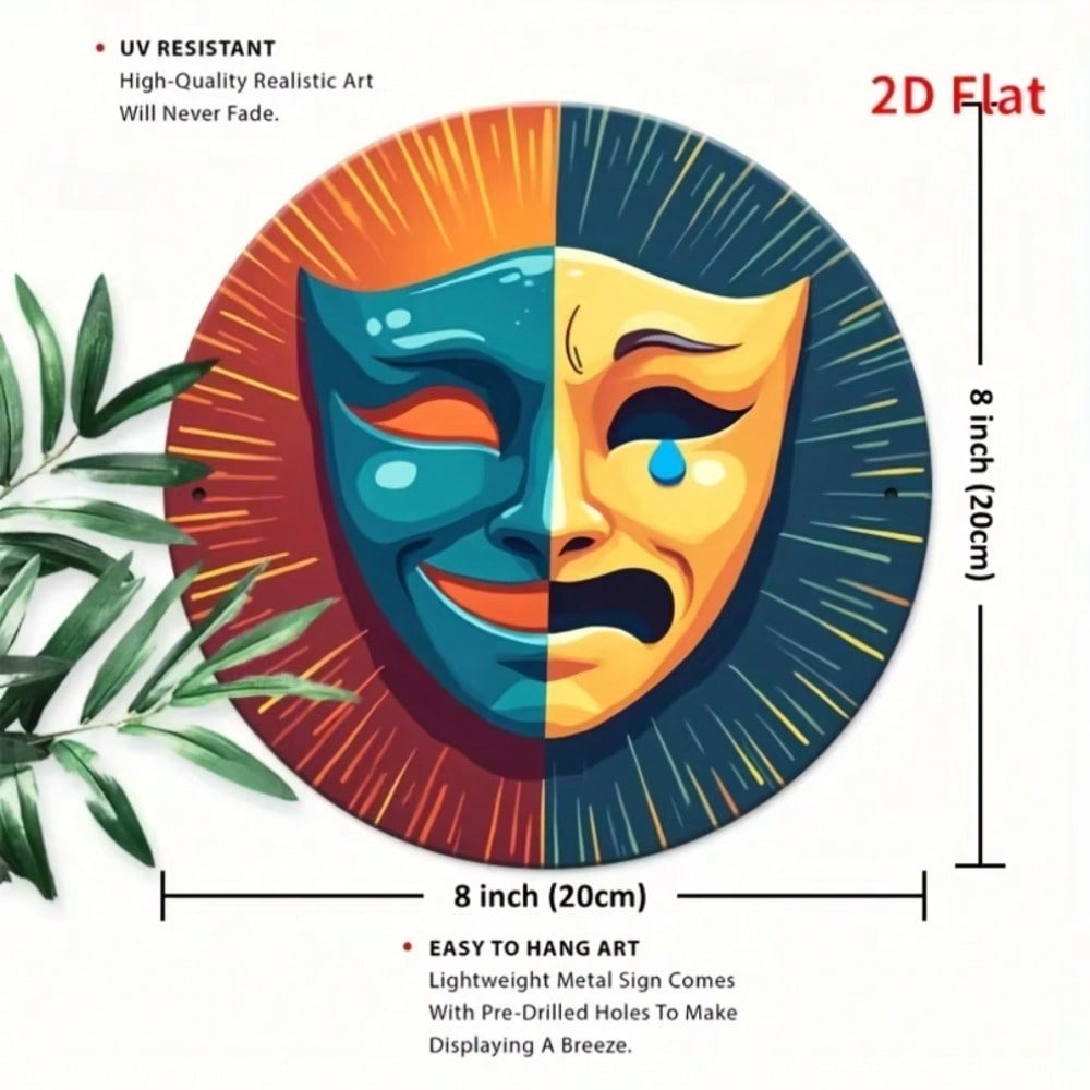 Vintage Drama Masks Metal Sign Teal Blue Red Theater Wall Art Home Decor