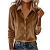 Women's Fashionable Color Lapel Long Sleeved Casual Loose Gold Velvet Shirt Top