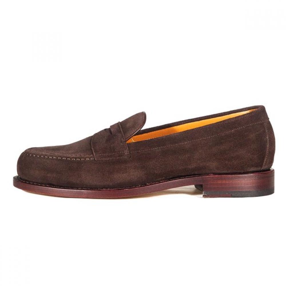 The Fortuna Dark Brown Suede is a men’s penny loafer style, featuring a hand-welted leather sole for exceptional comfort. Made from premium suede material, it boasts a sophisticated design suitable for casual to formal looks. The dark brown color presents a soft texture that is characteristic of the brand.