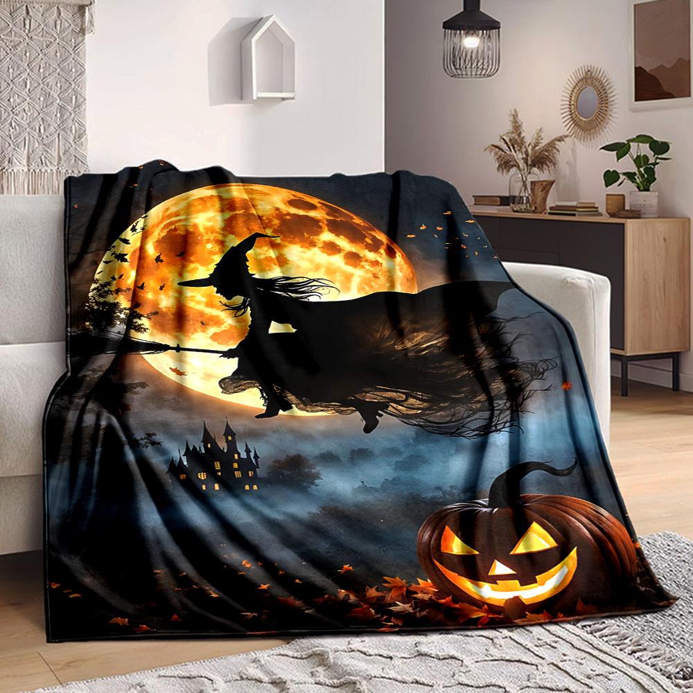 1pc Halloween Witch Print Blanket Lightweight Flannel Throw Blanket For Sofa, Bed, Living Room, Office, Outdoor Travel, Camping
