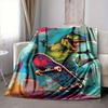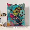 1pc DinoSkateboard Blanket, Lightweight Flannel Throw Blanket For Sofa, Bed, Travel, Camping, Living Room, Office, Couch, Chair, And Bed