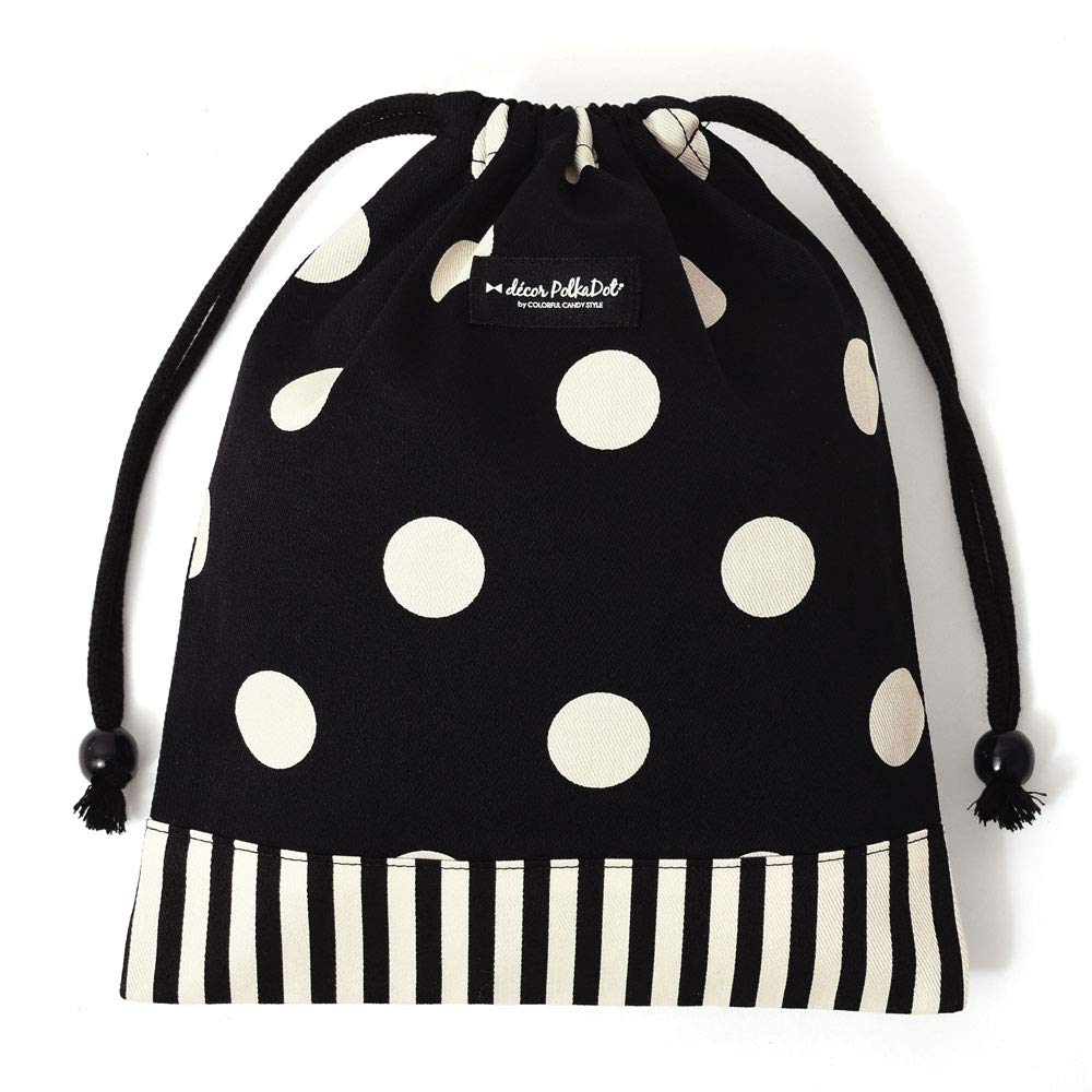 COLORFUL CANDY STYLE Drawstring Lunch Stylish and Cute for Elementary and Middle School Polka Dot Large N7013200 Girls' Bag, Students, (Twill/Black),