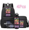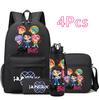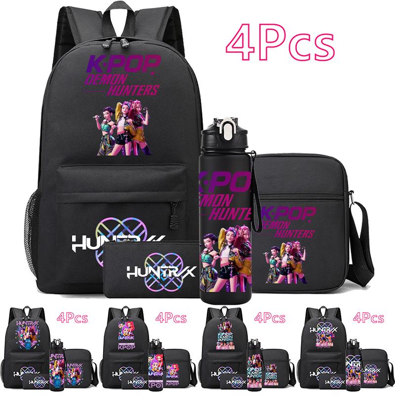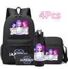 4Pcs/set Anime Cartoon K-Pop Printed Backpack with 750Ml Water Bottler for Teenager Student Girl Boy Bookbag Kid Gift Large Capacity Travel Bag