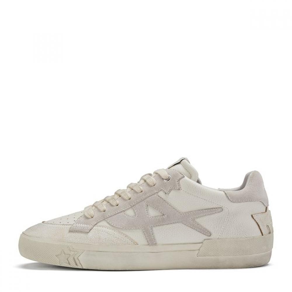 The ASH Moonlight Men Sneakers (AF2U01004/GY) are men's sneakers featuring a vintage washing technique. The upper is made of fabric and calf leather, while the sole is made of rubber, providing durability and comfort. The natural feel of use stands out, and the washing effects on the laces and upper are intentional design features.