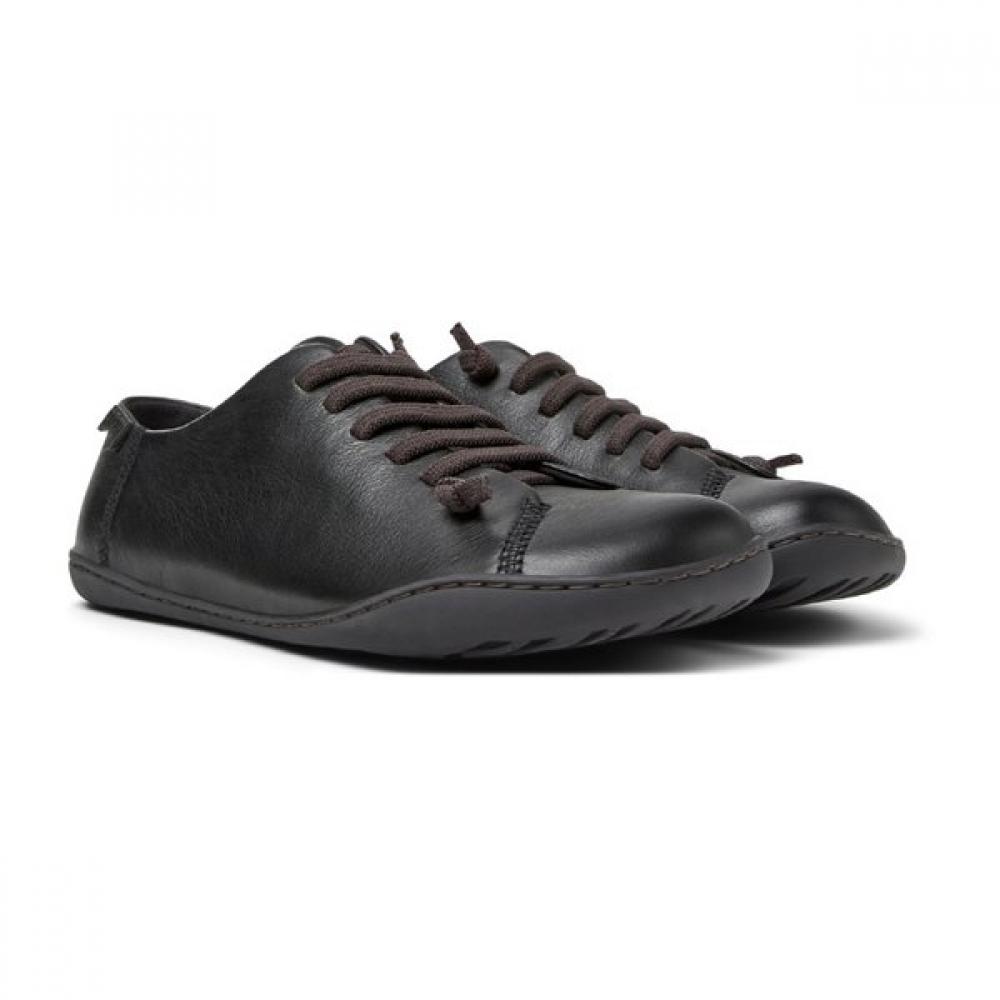 The Camper Peu Cami K200514-040 is a 25FW women's sneaker in a black casual shoe. The upper is made of calfskin, providing a soft and luxurious texture. The OrthoLite Recycled footbed enhances shock absorption and breathability, offering comfort for wear. Stretch laces are used to allow easy adjustment to the foot, while the rubber outsole enhances durability and grip. This product is an official women's black calfskin sneaker sold in the official Camper online store.