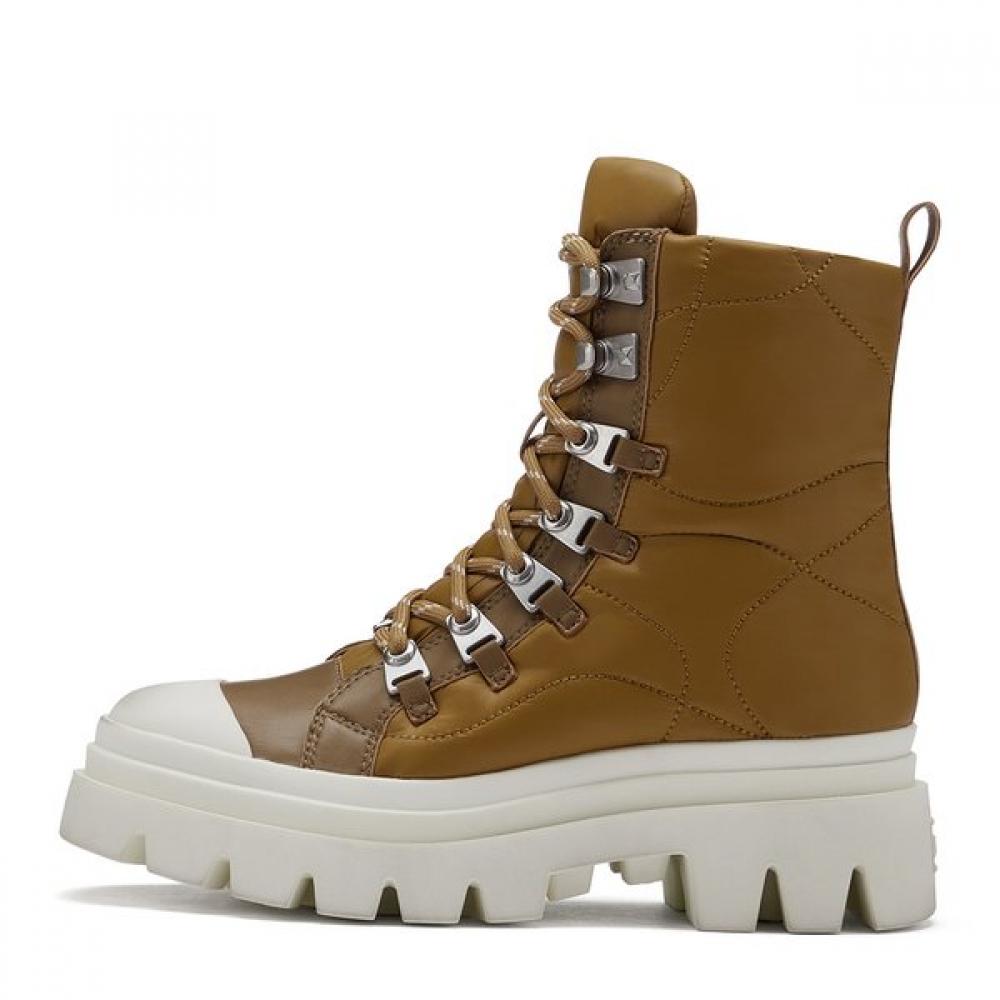 The ASH PEAK Walker (AD4D01138/BR) features a padded nylon upper in a vintage-styled worker design. It is made of suede leather and fabric on the outer layer, with a rubber outsole. The side zipper makes it easy to put on and take off, while providing a stable fit. Its padded worker boot style emphasizes warmth and comfort.