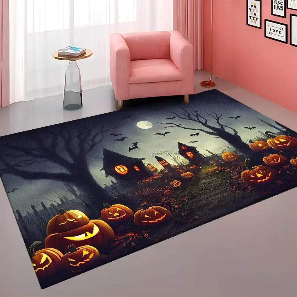 Halloween Pumpkin Witch Pleated Carpet for Living Room Sofa Table Large Area Rugs Bedroom Hallway Balcony Anti Slip Floor Mat