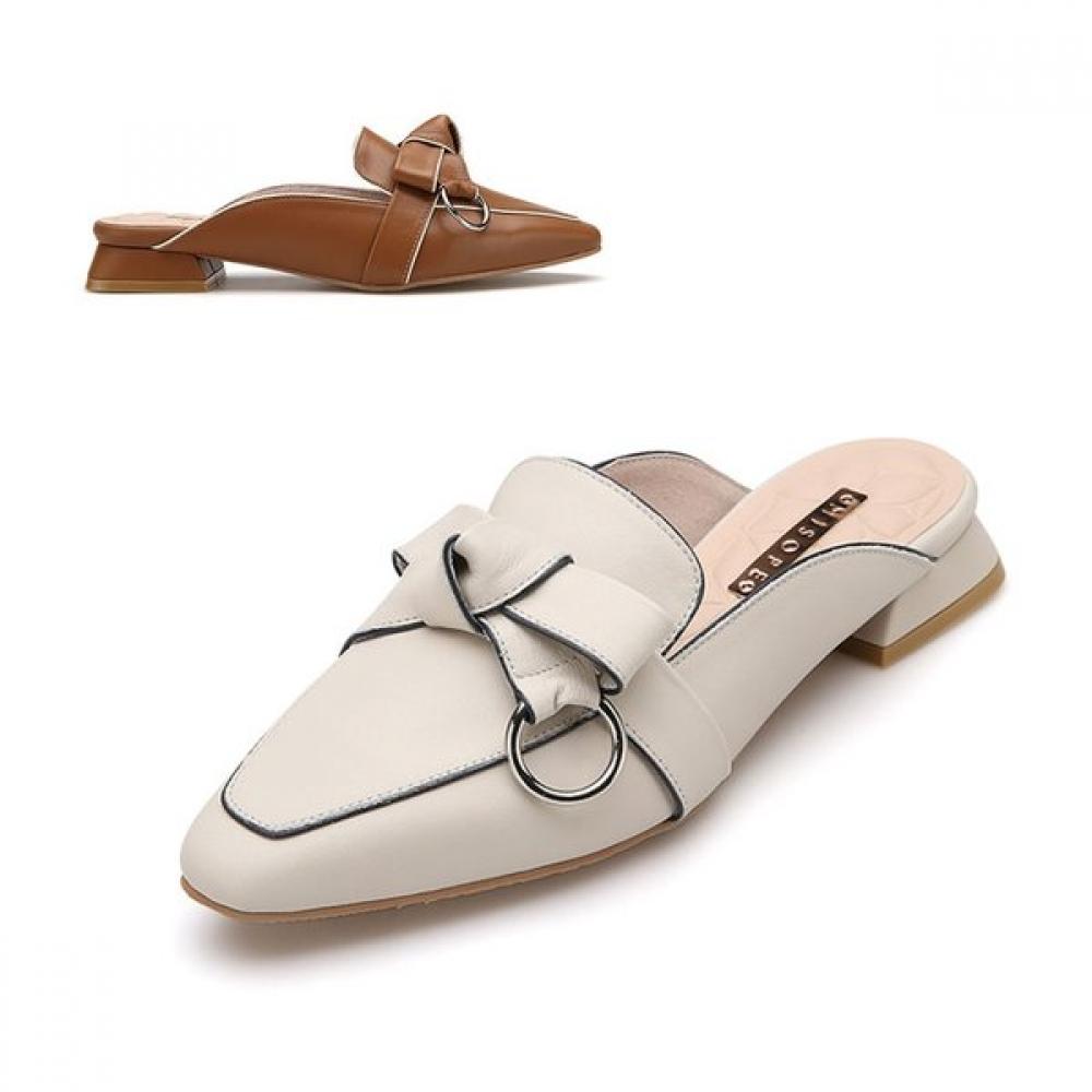 [Misopae] Women's Ribbon Square Loafer 012223001 features a ribbon decoration and square toe shape that emphasizes a feminine silhouette. With a heel height of 2cm, it provides a comfortable wearing experience and is designed to be close to flat, ensuring comfort even during long wear. Made from breathable synthetic leather and potentially a blend of natural leather, combined with a rubber outsole that provides slip resistance and cushioning.