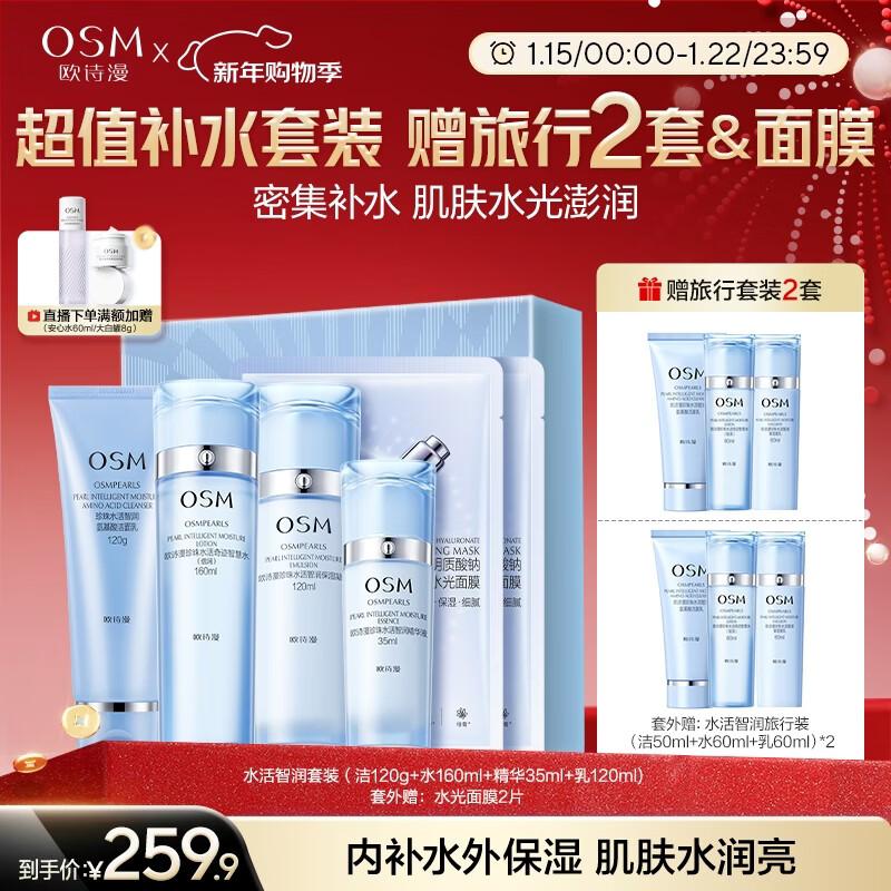 A luxurious skincare gift set from OSM, featuring pearl-infused formulas designed to deeply hydrate and moisturize the skin. This set typically includes essentials like cleanser, toner, lotion, and essence, providing comprehensive care for a radiant complexion. Suitable for dry skin, it makes an exquisite gift.