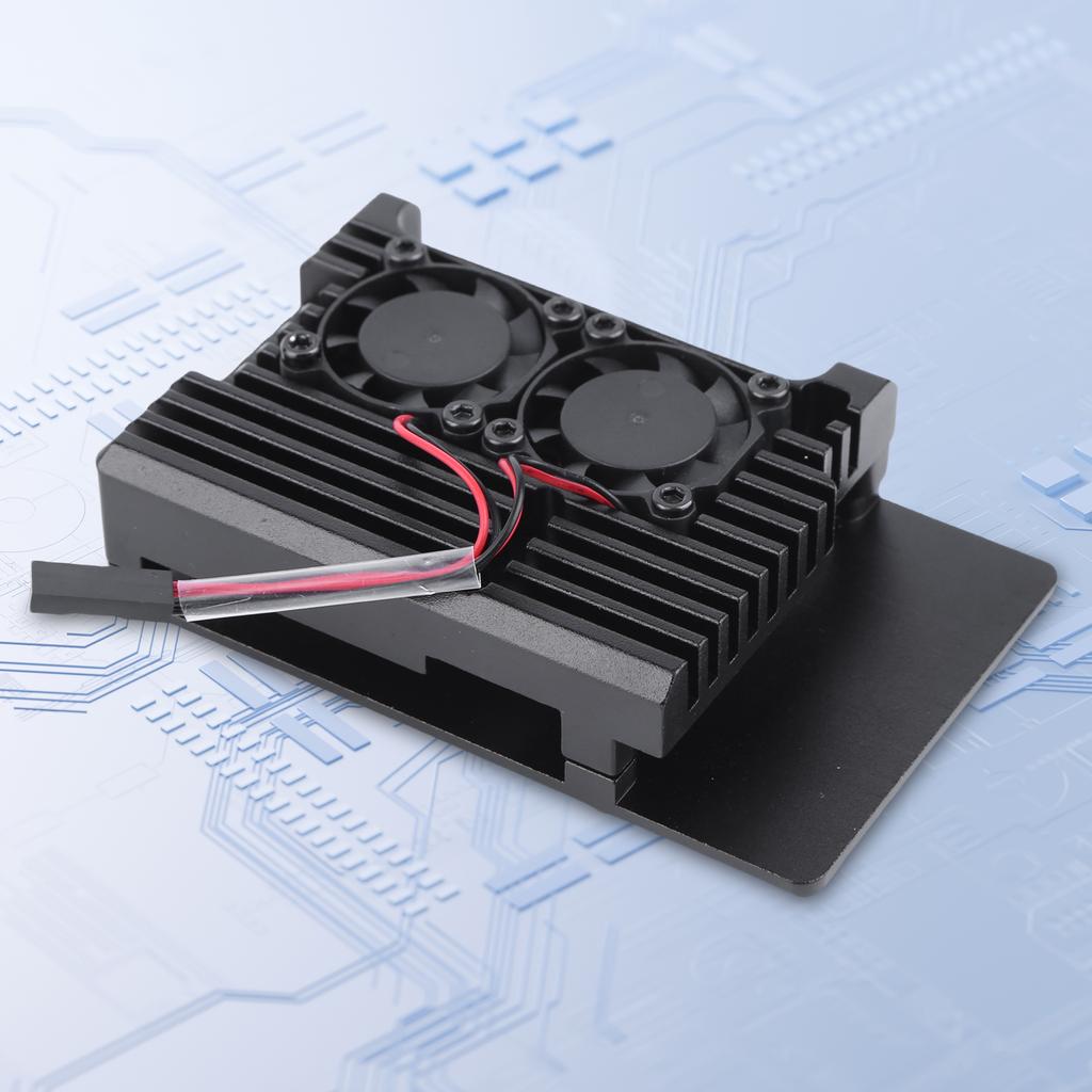 Heavy Duty Passive Cooling Metal Case with Dual Cooling Fan Metal Protective Enclosure Suitable for Raspberry Pi 4 Model B