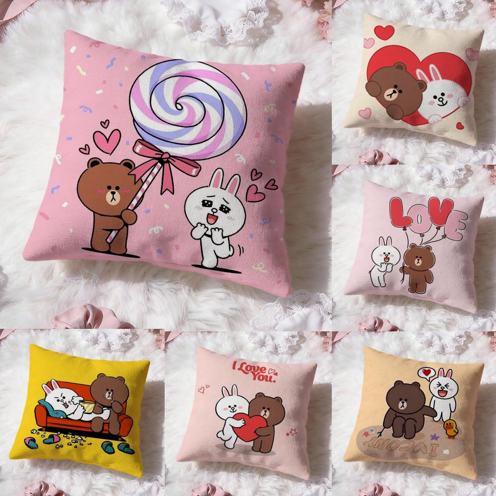 Line Town Bear and Cony Cushion Cover Premium Comfort Reversible Pillow Cove -Two in One Design for Any Room & Car Interior