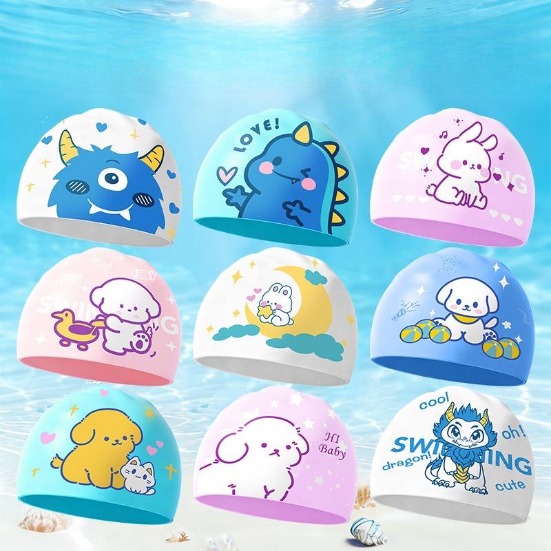 New Children's Cartoon Swimming Cap Cute Dolphin Waterproof Ear Protection Swimming Caps Kids Hot Spring Swimming Equipment