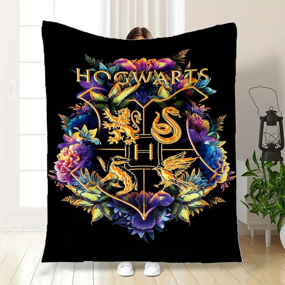 Hogwarts House Crests Flowers Phone Case CoverBlanket Flannel Throw Blanket for Sofa, Bed, Travel, Camping, Office, Couch, Chair