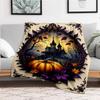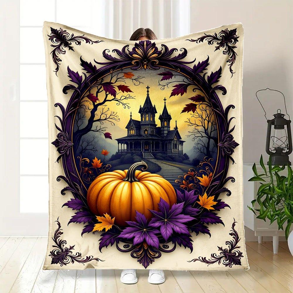 Halloween Haunted House with Pumpkin and LeavesBlanket Flannel Throw Blanket for Sofa, Bed, Travel, Camping, Office, Couch, Chair