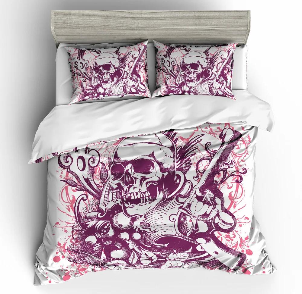 Luxury Bed Linens Set King Size All Hallows' Day Sugar Skull Duvet Sets Bedding Dekbedovertrek 240/220 Purple Pink Home Textile