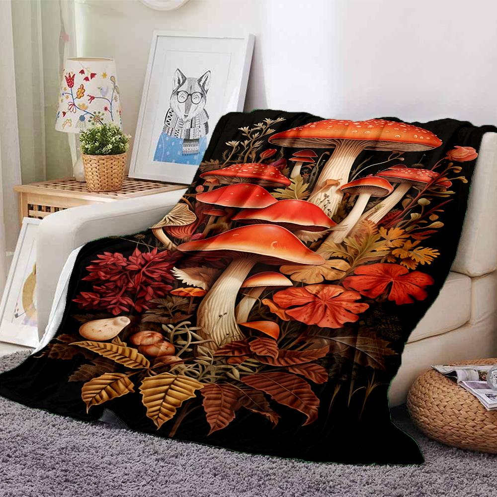 1pc Mushroom Artwork Soft Warm Throw Blanket Nap Blanket For Couch Sofa Office Bed Camping Travel,Comfortable