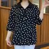 Womens Rust Red Manin Collar Half Sleeve Blouse with Knot Detail
