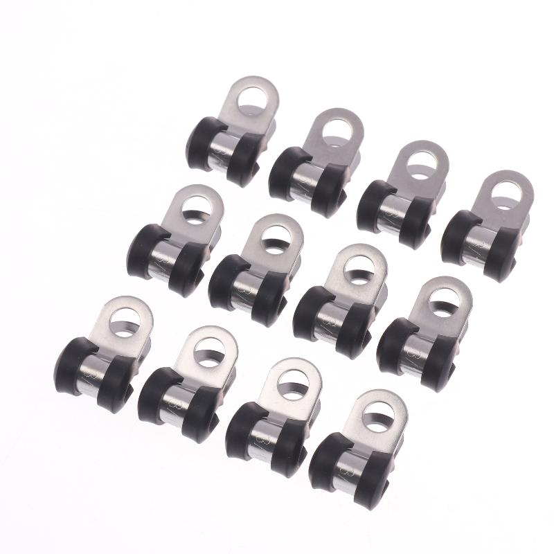 Compilation of 12 Brake & Gas Line Rubber Lined Metal Fixing Clamps, Wiring Hose Pipe R Clips, 3/16"