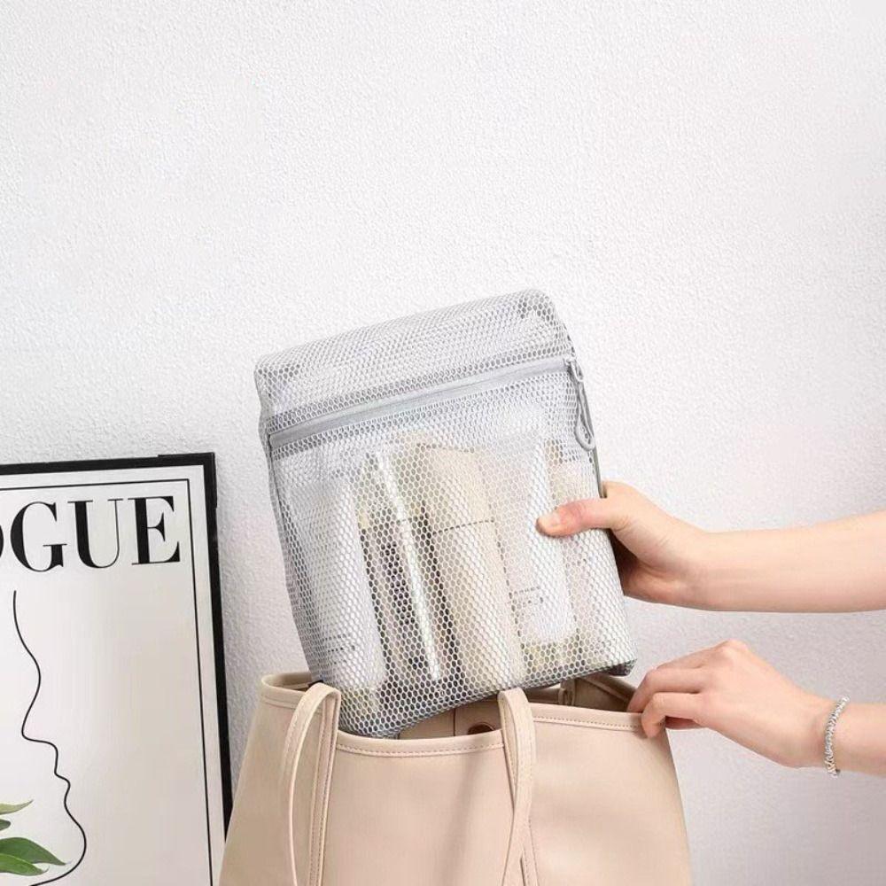 Casual Nylon Storage Pouch With Zipper Hand-held Cosmetic Bag Multipurpose Mesh Mesh Pouch Women