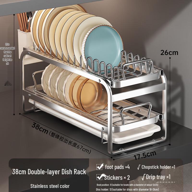 Stainless Steel 2-Tier Dish Drying Rack with Chopstick Holder