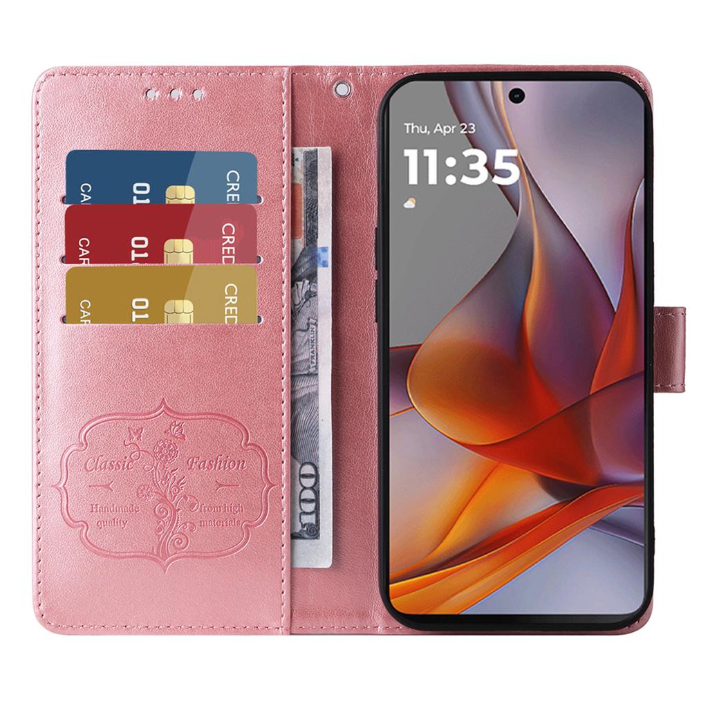 Motorola Moto G04 4G/G24 4G/G04s 4G/E14 4G için Standlı Kılıf Kelebek Çiçekli Baskılı Cüzdan Deri Telefon Kılıfı