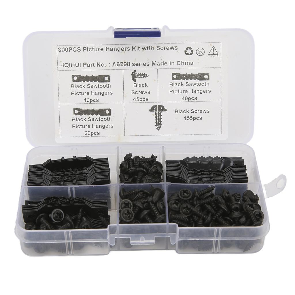 100Pcs Picture Hangers Rust Resistant Stable Seamless Sawtooh Frame Hanging Hooks with 200Pcs Screws