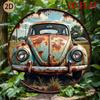 Vintage Car Rusty Metal Tin Sign 2D Round Retro Garage Cafe Wall Decor