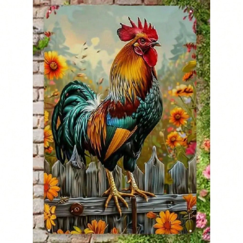 Vintage Farmhouse Metal Wall Art Rustic Rooster Sign 8x12 Inch Outdoor Indoor Decor