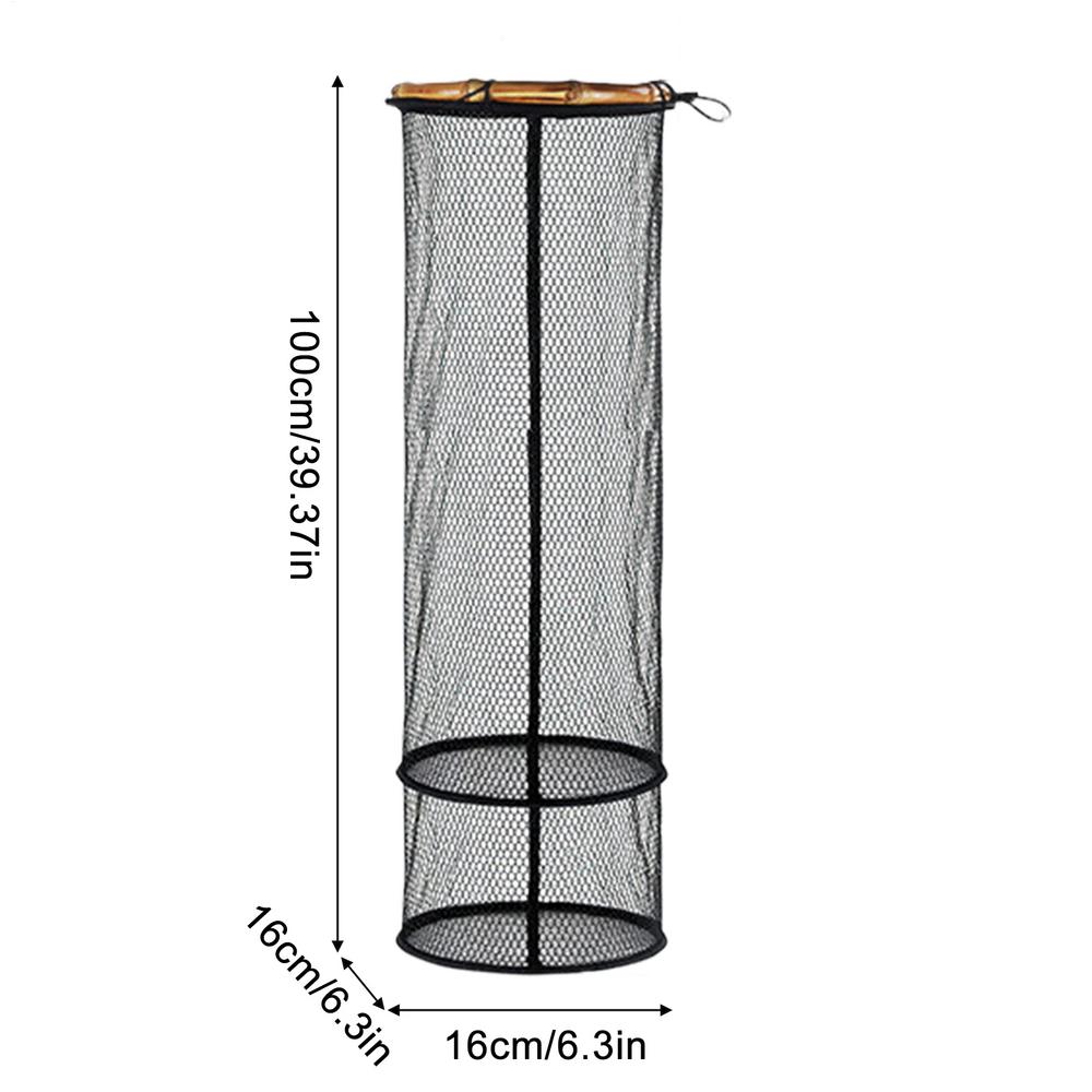 Fish Basket Lightweight Nylon Mesh Bait Storage Cage Foldable Fishing Holder for Kayak Crayfish Baitfish Bass Trout Catfish