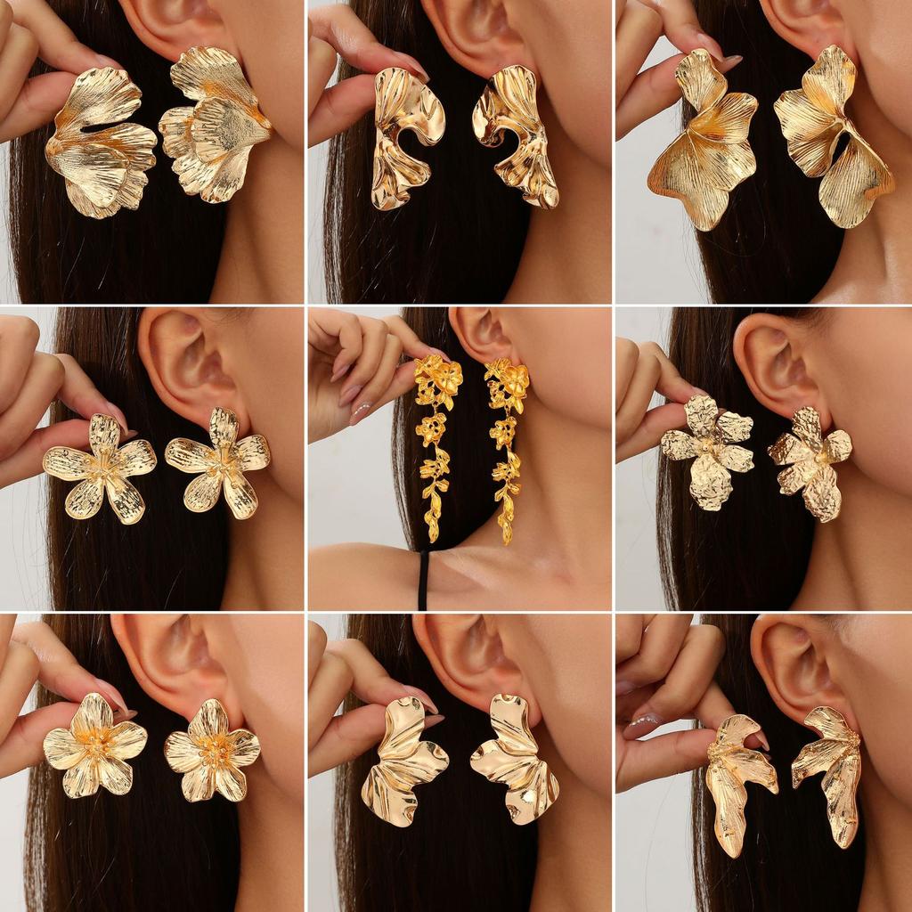 Vintage Metal Gold Color Flower Big Earrings for Women Fashion Floral Statement Earrings Jewelry Gift