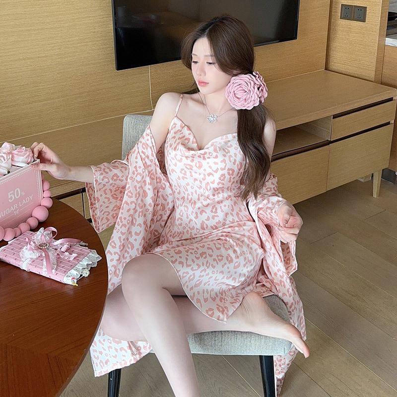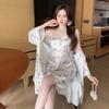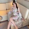 Pajamas Women's Spring Summer Sexy Pajamas Pure Style Printed Thin Ice Silk Suspender Skirt Pajamas Homewear Two-piece Set