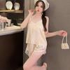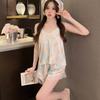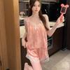 Summer New Ice Ribbon Chest Pad Sweet and Cute Pure Sexy Lace Suspender Shorts Printed Two-piece Set Women's Spring and Autumn