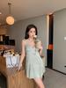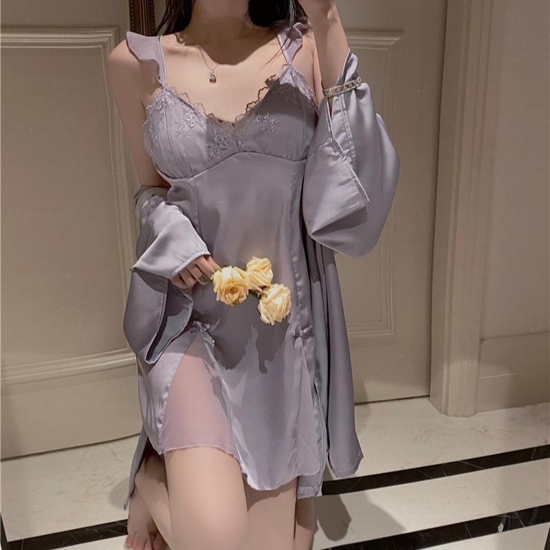 Summer pure court style ice silk suspender nightdress women's summer with chest pad sexy lace pajamas loungewear summer