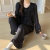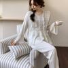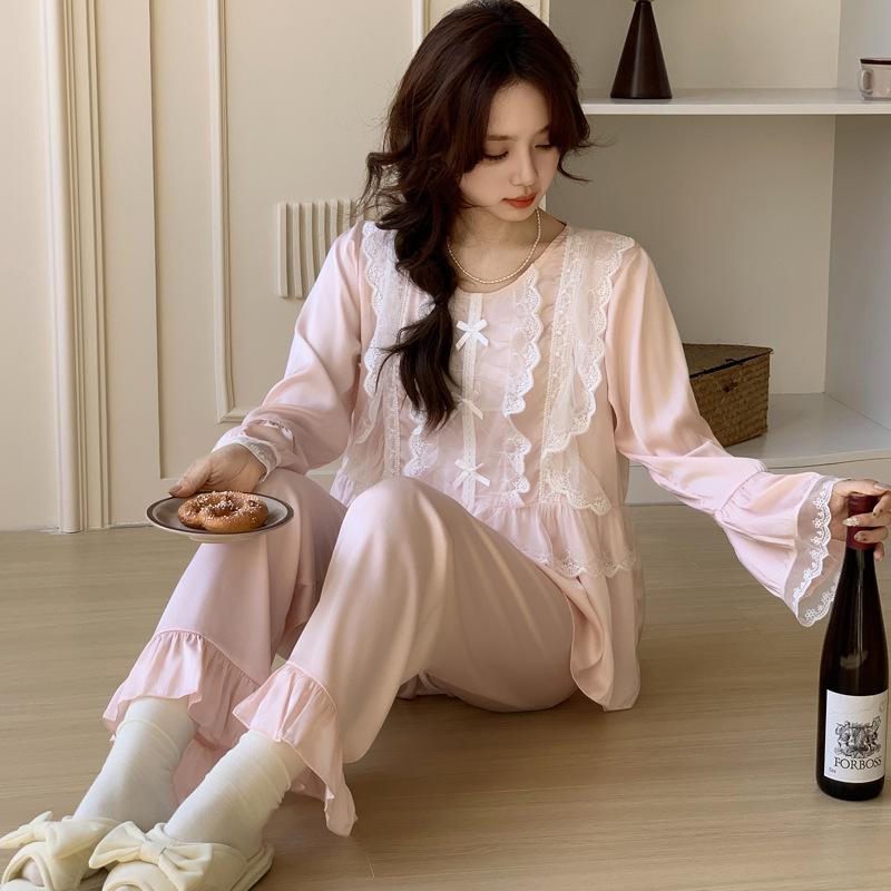 Ice silk pajamas women's spring and summer new lace long-sleeved trousers silk suit thin can be worn outside the Korean version of the court style